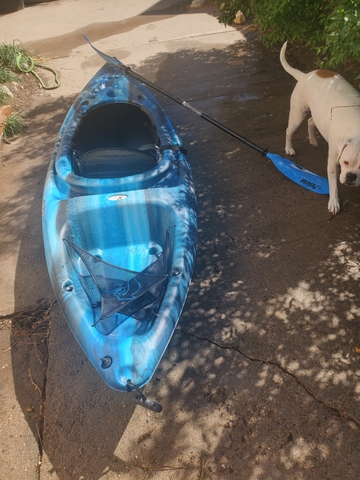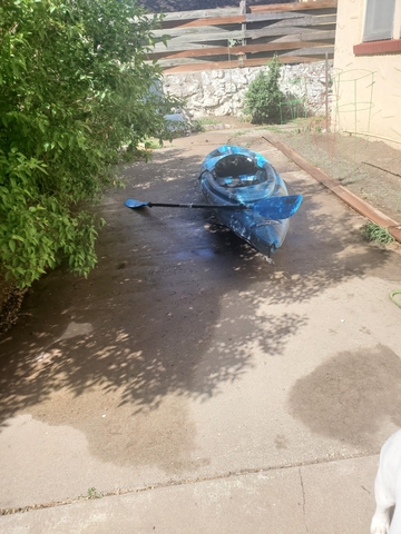 This Kayak has been lightly used. It's weight is 40 lbs, making it easy to transport. Heavy duty 300 lb weight limit, 10 ft. long. Ready for someone else to enjoy.