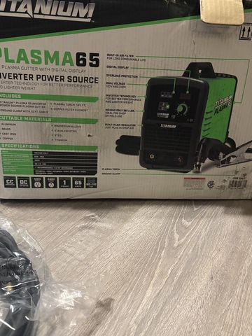 65amp titanium plasma cutter. New in box, never has been plugged in. Works on 110v or 220v