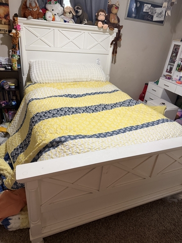 Have a full size bed frame for sale. Still in good condition just for our daughter a different bed. This doesn't come with the mattress. This was bought from Millers of Claflin a few years ago!