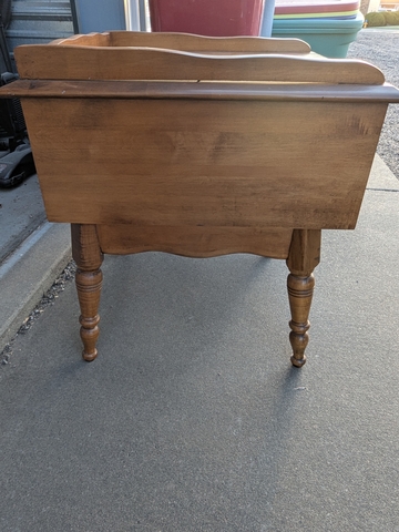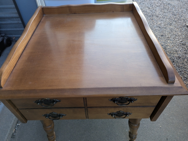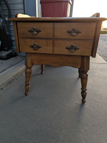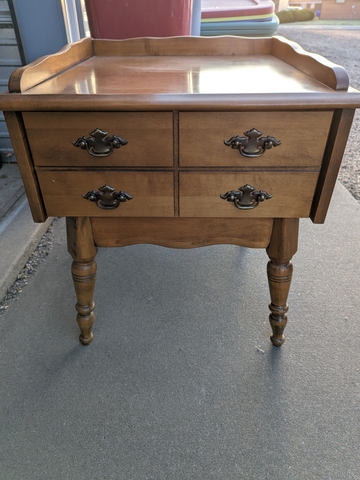 This end table w/drawer belonged to my grandmother. It is in pretty good condition for it's age. It measures 22in x 22in x24in . It's availible for pickup anytime on the weekends and after 6:45 pm on the weekdays. Cash only please. Message if interested.