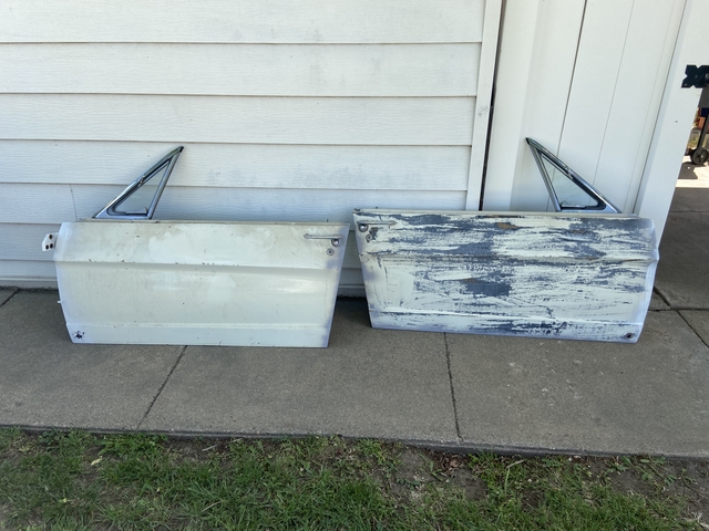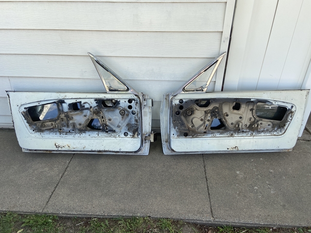 1964.5 thru 1966 Mustang Coupe driver and passenger side doors, sold as a pair, has some rust holes as shown in the pictures, both doors are complete with glass they came off my 66 and I no longer need them, come and get them asking $100 call or text 620-617-6331