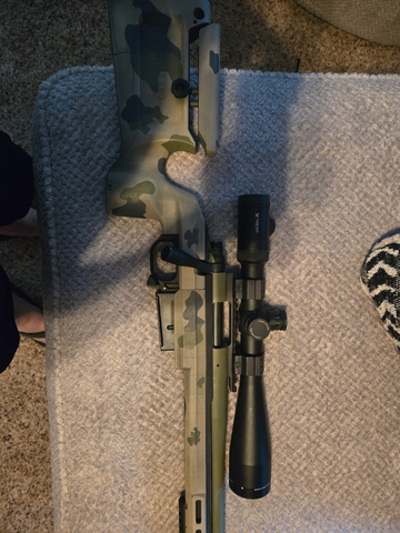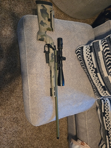 Remington 700 custom chambered in 6.5x47 lapua krg. stock and barrel is cerakoted bottom metal. Timmney trigger. Scope is vortex viper pst. 2500 obo