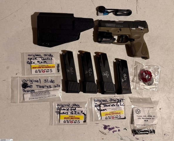 Taurus G2c in FDE and black slide. Comes with everything listed below and will not seperate. It comes as a package.