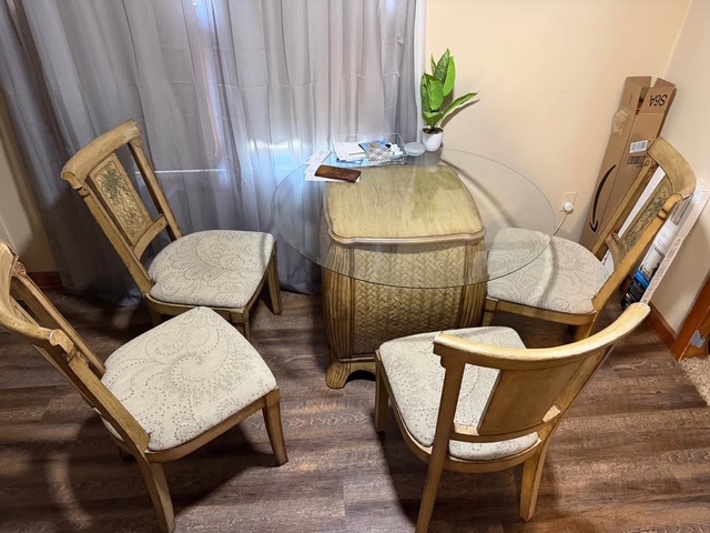 I have a Tommy Bahama style dining room set. It comes with the glass top dining table, 4 chairs, and curved buffet base. Nothing wrong with any of it but we upgraded. $500 OBO.Call or text @78five-6seven3-67six0
