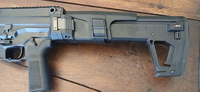 Folding stock like a scar, with adjustable cheek riser.