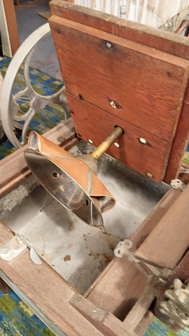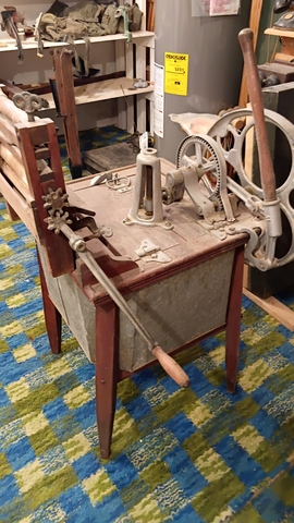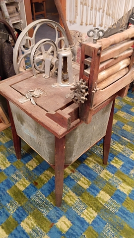Most surviving wringer washers are later, rotary-crank models from the 1910s–1920s. This example represents an earlier engineering phase, with a flywheel-driven agitation system that is far less commonly found today.