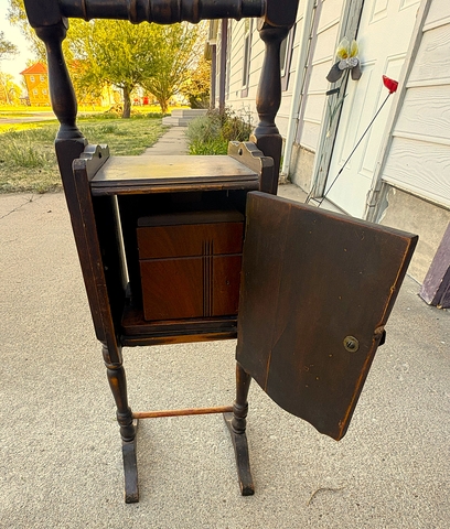 Hinged door, Tin or Copper lined interior for storing Tobacco, good condition