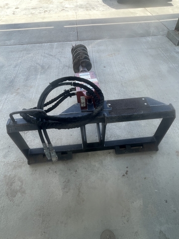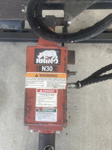 FOR SALE IS A USED RHINO N30 HYDRAULIC PLANETARY DRIVE POST HOLE DIGGER WITH A SKIDSTEER MOUNTING PLATE, HOSES AND COUPLERS AND A 9" AUGER WITH ROCK BIT.