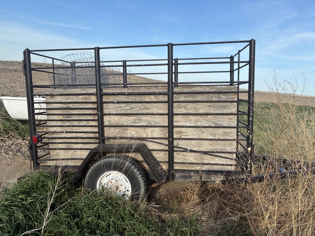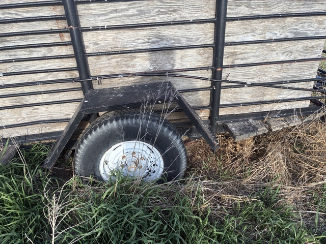 trailer we used for small livestock a few goats sheep would be ideal also for a bucket calf. Used to haul a few 4-H projects to town. Will need tires we wired lights on it when we used years ago may or may not work. Probably needs hauled since tires are down