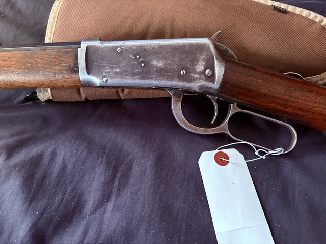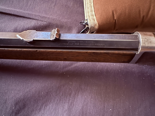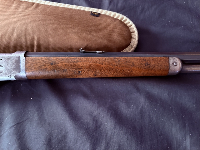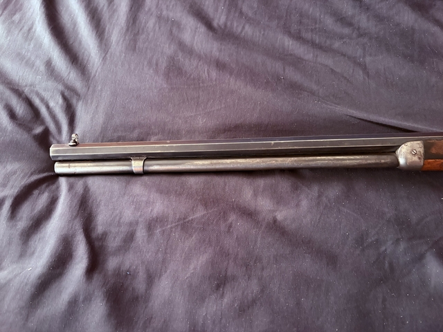 This is a early Winchester 1894 rifle with a full length octagon barrel with the rare to find rear 3 leaf folding sights and a folding beaches front with ivory bead and fine post in caliber 25-35 manufactured in 1902. These earlier 1894's in 25-35 are harder to find especially with these sights this one is in nice condition with the stocks being full fitting and solid the barrel has most of its original blue that is thinning and wore on the high points and edges with the mag tube showing approximately 30-40 percent blue with the rest toning a silverish patina the receiver has blueing in protected areas with the rest toning silverish patina. The bore rates around 7/10 and shoots good. For more information or pictures you can message me call or text at 78five-6one4-13six8 I am asking $2,750 cash but may negotiate some. Thanks for looking.