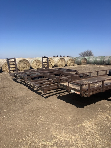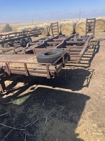 1991 Homemade Trailer with pintle hitch, 8.25R15TR 14 ply tires. One bad tire out of eight, have spare. Selling " as is". Last used to haul JD 4730 Sprayer. Title. Gary at 785-798-5220.