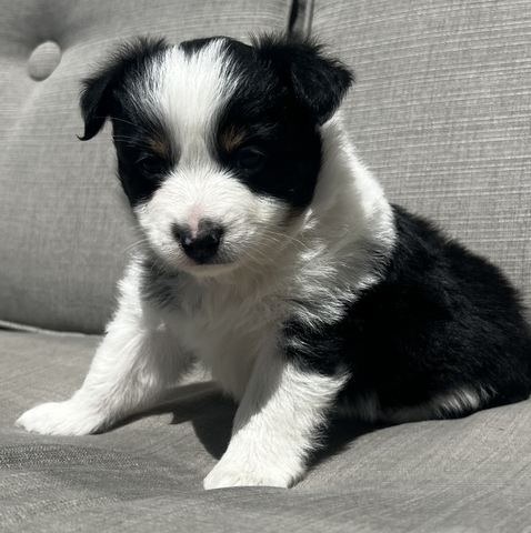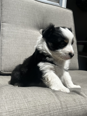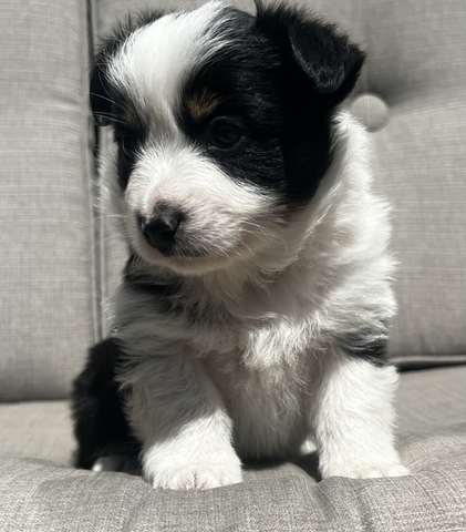 Male tri mini/toy Aussie with limited copper and double brown eyes. He's is 5 weeks old now and will be ready to go by 7/8 weeks. Will come with first round of puppy shots, declaws removed, dewormed, tails docked, and vet checked. These babies come full of love and handled daily since day one. Mom (mini) weighs 24lbs and dad (toy) weighs 12 lbs. last pictures are of parents. If interested message or call/text 620-639- two one seven five. Taking non refundable deposits now to hold puppy of your choice until weaned.
