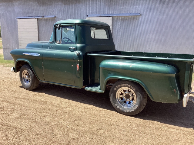 3100 stepside. 350 Chevy engine, 3 speed automatic transmission on the floor. Starts and runs good. Clean Title in hand. No texts or emails. Call six 2 zero- seven 9 three- four 9 four 9.