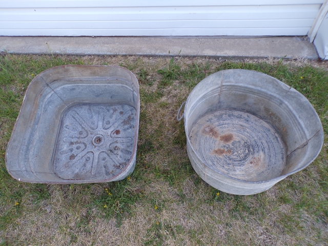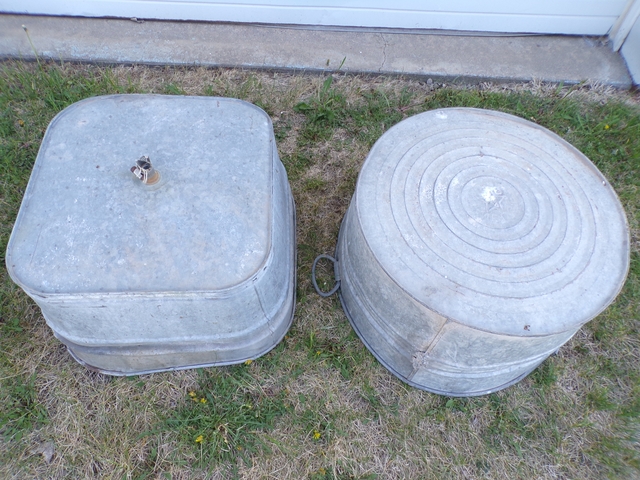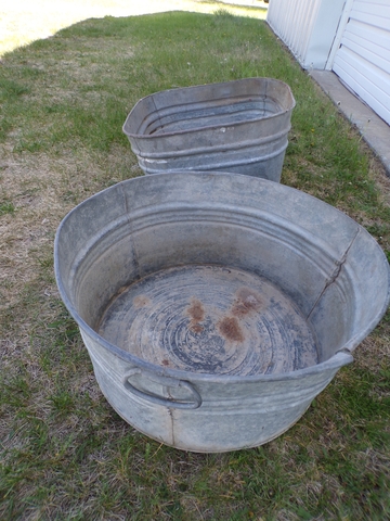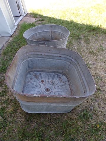 2 old galvanized wash tubs. Round one is 22" diameter, Square one is 20". $10 for choice. Call 6206176644 - emails & texts are usually ignored as a scam,
