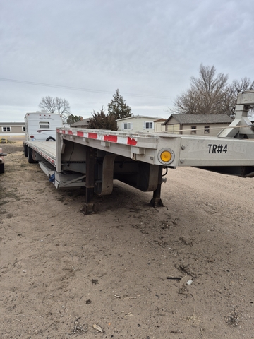 2013 rentiour lowpro step-deck 53x102 sliding axle on rear 19.5 tires, mega ramps, scales, 11ft upper deck, brakes are a yr old, 70% tires. Located in Brewster kansas Dont need help selling so auction time or truck paper no need to call!!!! No shipping buyer must pick up