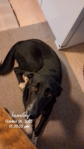 Year old Pyrenees cross female puppy. Needs space to roam amd go wherever she wants, good with all animals and livestock except chickens. Loves little kids and car rides.