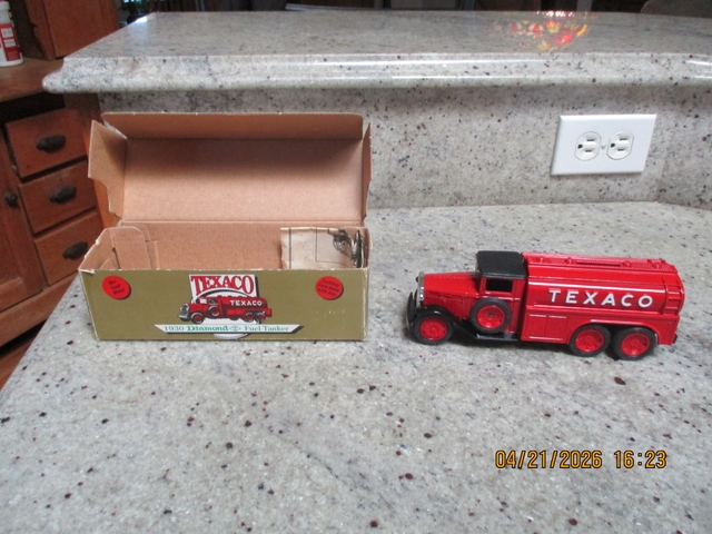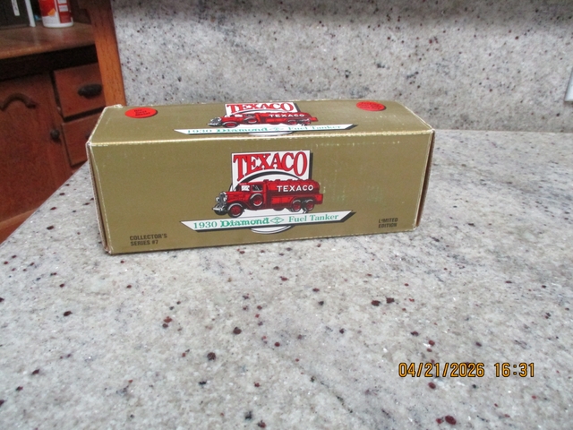 I have for sale a die cast Texaco 1930 Diamond fuel tanker bank with key for sale and I am asking 30 dollars for it. It is brand new and only out of box for pictures. If interested call 785-625-5110 or message me on Nextech.