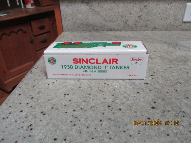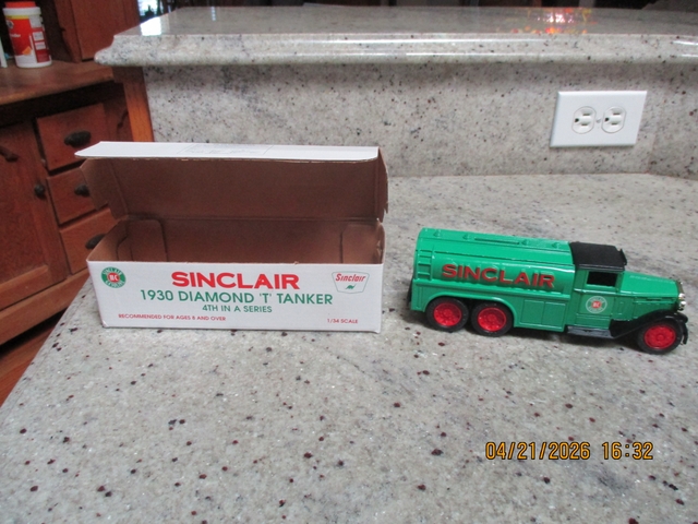 I have for sale a die cast Sinclair 1930 Diamond T Tanker bank with key for sale and I am asking 30 dollars for it. It is brand new and only out of box for pictures. If interested call 785-625-5110 or message me on Nextech.