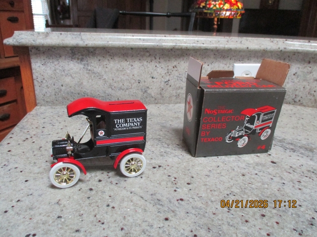 I have for sale a die cast Texaco 1905 Ford Delivery car bank with key and I am asking 30 dollars for it. It is brand new and only out of box for pictures. If interested call 785-625-5110 or message me on Nextech.