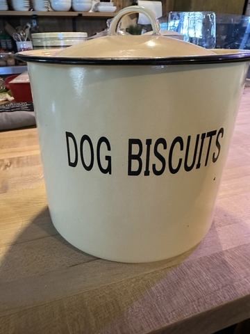 Metal dog treat canister with lid