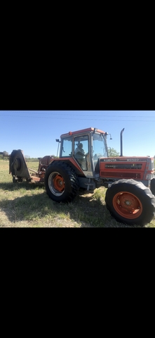 Bargain time just in time for mowing season. This is a Kubota M9580 4wd tractor which I believe is a 100hp. It comes with a Rhino 15ft batwing mower. I'm selling this for a friend who took it as security on a loan. As near as I can tell everything works. Recently mowed 20 acres with it. There does not appear to be any leaks anywhere on the tractor. Air conditioning seemed to work. Shuttle shift. Missing left side cover. Front tires are weak but useable. Located in Hutchinson. Cash only. Can get more photos if you want. 2999 hours on the meter.