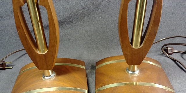 3 MCM Match Set Walnut Wood Light End Table Desk Lamp