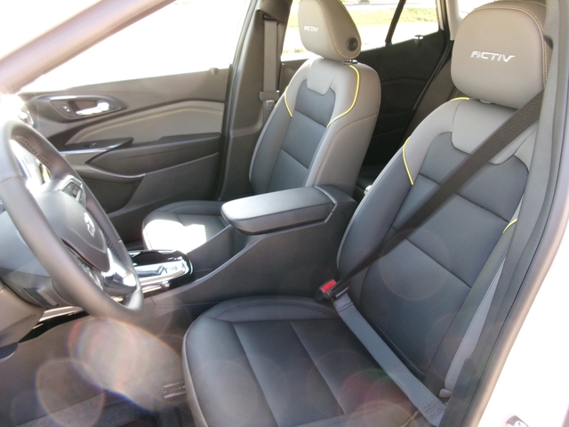 2026 Chevy Trax Activ, FWD, 1.2 turbo 4 cylinder, power windows & locks, tilt, cruise, rear cross traffic alert, lane change alert with side blind zone alert, rear park assist, traction control, 4G LTE WiFi, Bluetooth, Am/Fm/XM, 8" touchscreen radio with Apple Car Play and Android Auto & backup camera, privacy tinted windows, automatic transmission with TAP shift, aluminum wheels, White Sands exterior jet black with artemis heated leather interior.