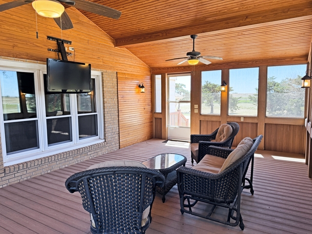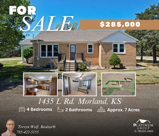 Enjoy peaceful country living just south of Morland KS with this well-maintained home sitting on approximately 7 acres. This property offers 4 bedrooms, 2 bathrooms, plus additional bonus rooms for office and storage. All appliances stay with the home for your convenience. The standout feature is the spacious 16x25 screened-in back deck—an ideal spot to relax, entertain, and take in the wide-open views. Additional features include an in-ground sprinkler system around the house, radon mitigation system, on demand water heater, class 4 shingle roof and updated kitchen with granite counter tops. Outside, you’ll find a barn with corrals and fenced pasture, ready for livestock. With a comfortable layout, functional space, and room to roam, this property is the perfect blend of country charm and everyday convenience. Call Trevyn Wolf at 785-422-5155 to schedule a showing.