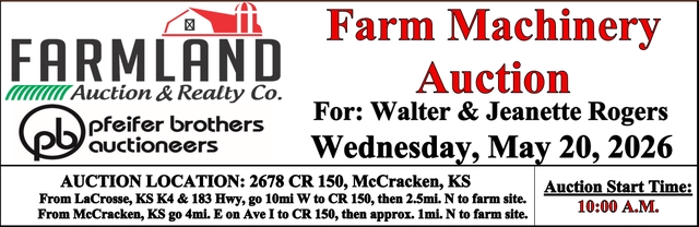 Auction Company are agents of the sellers and are not responsible for accidents or theft. No guarantees or warranties will be expressed or implied. Terms of sale: Cash, Checks, Debit/Credit Cards. Auction Note: Walter and Jeanette have retired and rented out their land and are offering at public auction their nice, well-maintained tractors and machinery. Most were shedded. Walter was born and raised on this farm, and there are many older, interesting items too numerous to list. A lunch stand will be on site. TRACTORS AND LARGE ITEMS TO SELL AT 12:00 NOON
