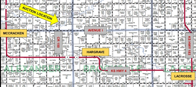 From McCracken, KS, go 4mi. E on Ave I to CR 150, then approx. 1mi. N