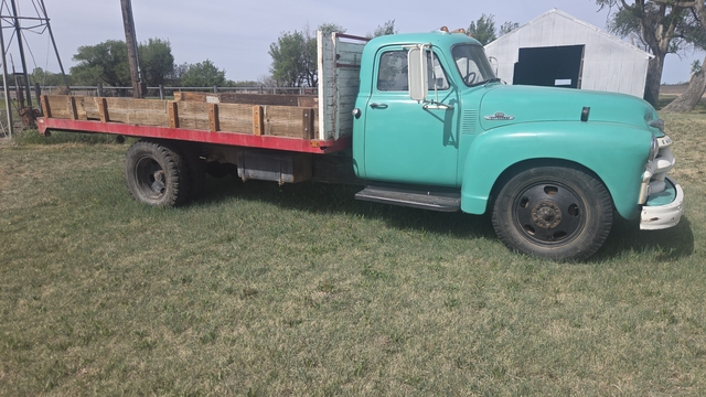 - 1955 Chevy truck, 4x2spd, 15’ box & hoist, w/steel floor & grain sides, VIN# 009584EF55N