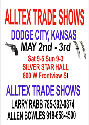 Gun and Knife show in Dodge City Kansas. Saturday 9-5 Sunday 9-3