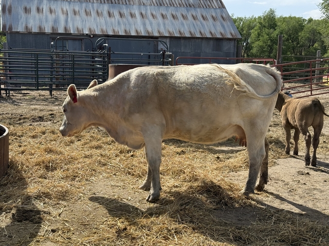 Only selling because we don't have any bulls that aren't black. She has given us 3 great grey calves, but she needs a Red or Charolais bull to give you a more profitable calf.