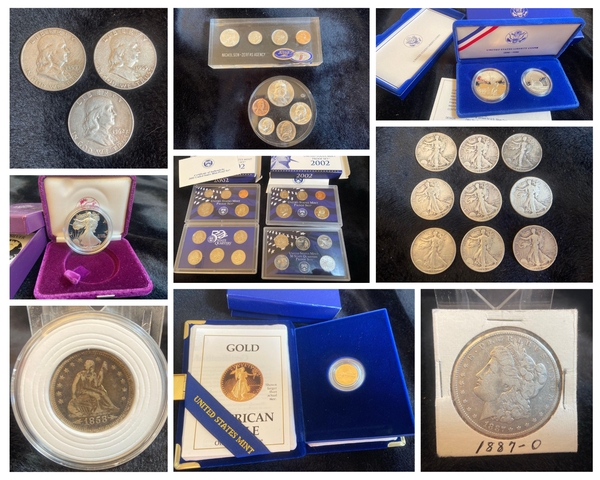 This auction has many Silver Eagle Proofs, Morgan Dollars, Silver Proof sets, silver coin bulk lots, tenth ounce gold coin proofs, and much more! All items are eligible for shipping in this auction. Please take your time and scroll through all the lots. Everything sells AS IS. Items have not been tested unless otherwise specified. Come to the loadout prepared with what you might need, bring your own boxes and packing material, etc. If you think you need it, please bring it. Little to no loadout help will be available.