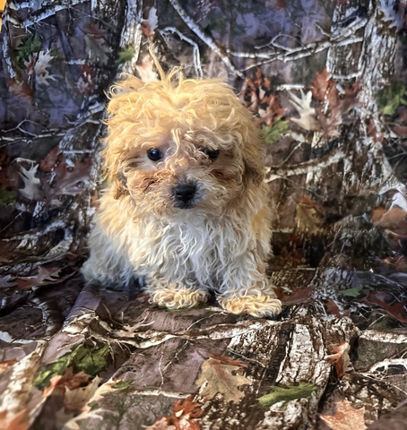 Maltipoo cross between poodle and Maltese ! Will be small as an adult ! Comes all up to date on shots and deworming one year health guarantee and a welcome home puppy bag ! Please 785-243-5381