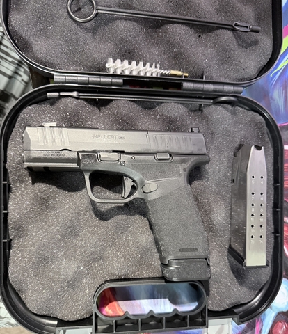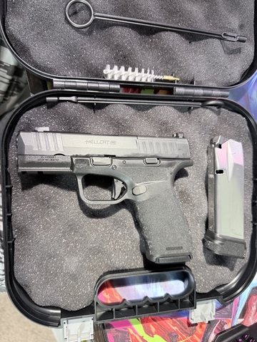 Springfield Armory Hellcat Pro Comp OSP 9mm semi auto pistol. Been my CCW for awhile now. Put roughly 1,000 rounds through it with no issues. It's integrally compensated offering reduction to recoil, comes with two magazines one 15 and the other 17 rounds. Looking for something slimmer like the G48 so I'm up for a trade. Not in a rush to sell but would consider reasonable offers.