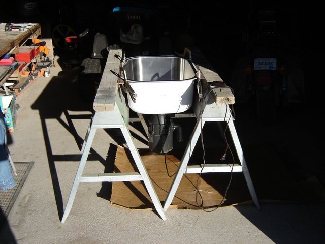 I used this setup a few seasons. Don't have trees anymore. Uses a heavy duty garbage disposal to grind. Turns apples into applesauce. Just wash, quarter and drop apples into stainless sink, push through disposal and then press. Made for home use. I run a fan on disposal to cool it. Will grind a lot of apples, just don't overheat motor. Does not include sawhorses. The press is a heavy 3.7 gallon press. Works well.
