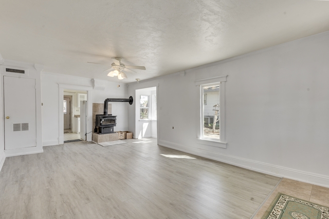 This adorable vintage two-bedroom, one-bath home sits under a canopy of mature trees providing shade and seclusion. The metal roof is maintenance-free. The property has several new windows, new vinyl floors and fresh paint in the living room. The plumbing and most of the electricity were replaced. The south foundation was raised and reinforced with a steel beam. Built-in bookcases and period details throughout the home make it quaint and cozy. The home is ready to move into. The 13’ X 24’ living room includes a wood-burning stove with a blower and a glass door/face that provides warmth and a cozy ambiance, while also reducing heating costs with the average gas usage averaging only $43 a month. There is a 10-year-old furnace as well.