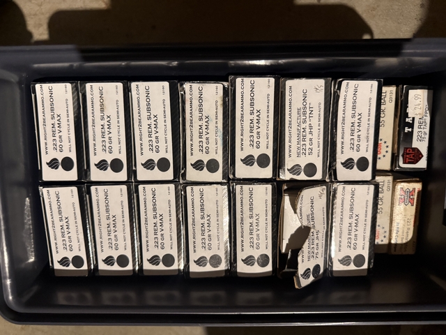 Right to Bear subsonic .223 ammo. This is very quiet when used with suppressor. $12/box
