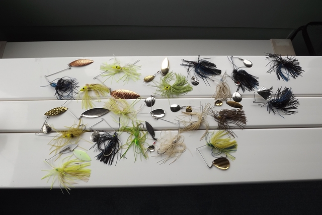 ~ 16 Spinner baits, various sizes and styles. All have ball bearing swivels on the blades. $30.00 for all.
