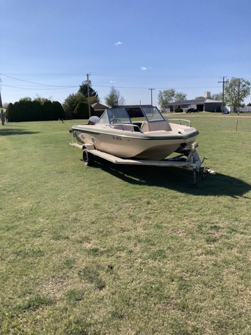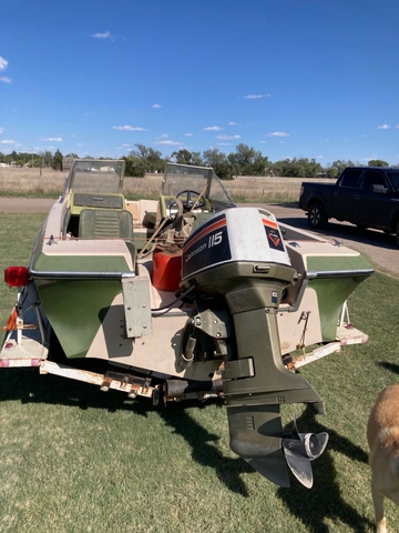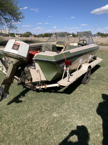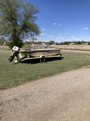 17' 1972 Glastron aluminum outboard gasoline boat for sale. Comes with 19' trailer. Call 620-430-1723