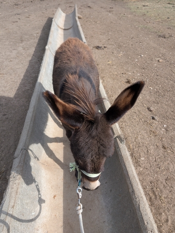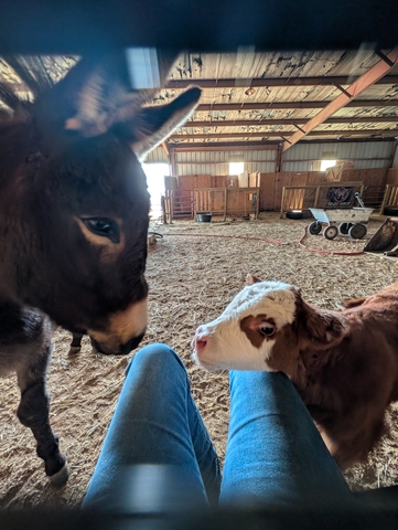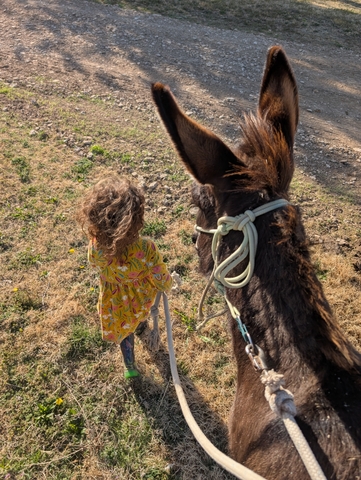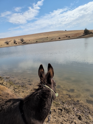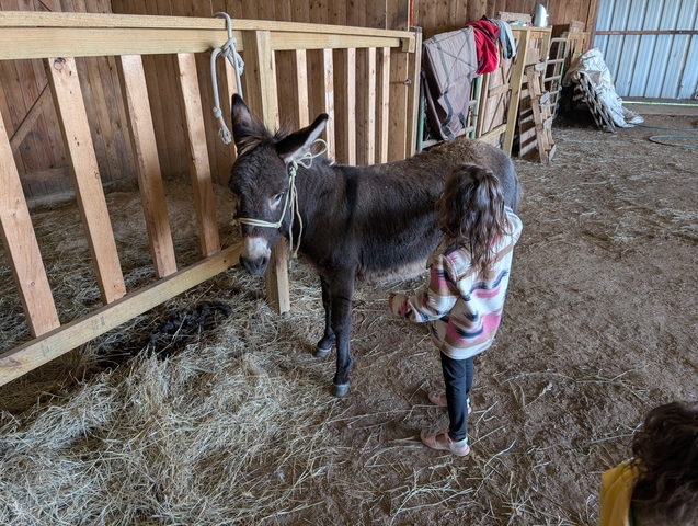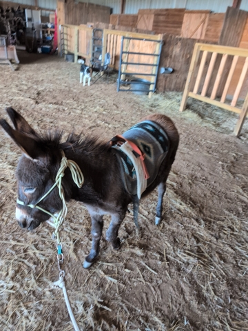 10 month old donkey, Mom was a mini, Dad is unknown. Super sweet and very protective! Looking for a good home! Call785five344001asking 1500